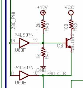 Если проц используется на меньшей частоте, чем рассчитан, то можно использовать резистор 330 Ом к +5В, но если нужна рабочая частота проца, то нужно собирать узел на транзисторе и 74S04, представленный выше. Надо кстати попробовать такое сделать в Профи 5 допустим.