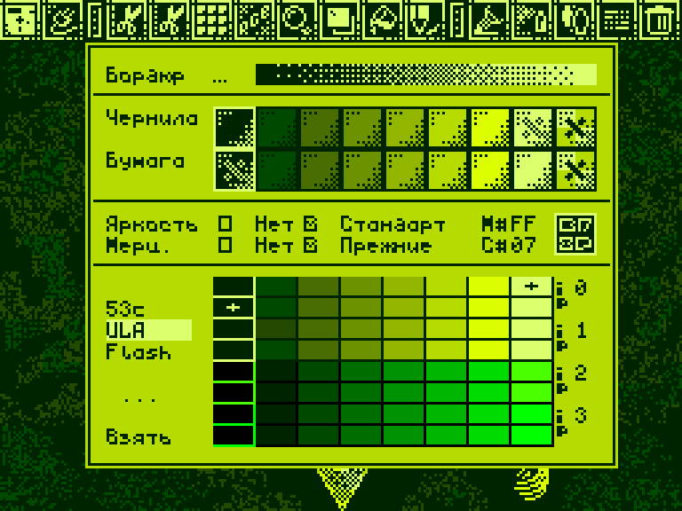 А вообще с этими палитрами столько непоняток и косяков как в документации, так и в исполнении и эмулировании (особенно ULA+), что жуть берёт.