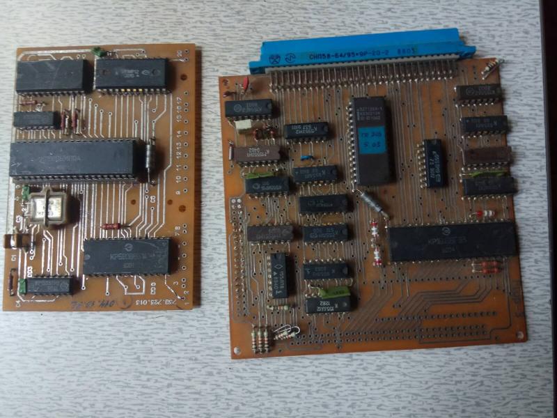 А вот третья плата, интересный девайс, кварц, проц ВМ80, таймер ВИ53, послед. порт ВИ51. Но ни ОЗУ, ни ПЗУ. Как такое запускать - непонятно. Видимо от какого-то контроллера на модульном принципе.