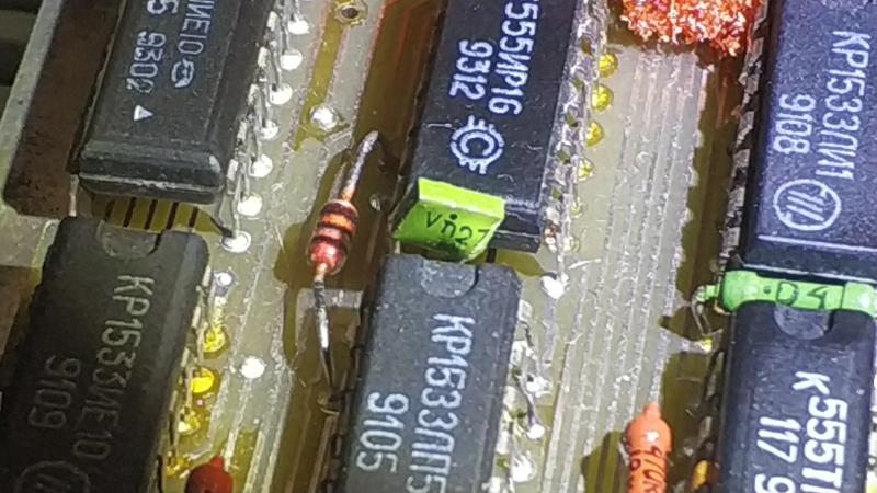С текущими номиналами резисторов R1-R6 напряжение на аналоговых RGB контактах платы либо 0,2В (цвет=0) 2,6В (цвет=1 BRIGHT=0) и 4,2В (цвет=1 BRIGHT=1). А это значит, что хоть на разъём для VGA-кодера и подведены аналоговые RGB сигналы, но они всегда воспринимаются как TTL-дискретные. Т.е. исправление разъёма XS3 с аналогового на цифровой не требуется - он и так фактически является цифровым.