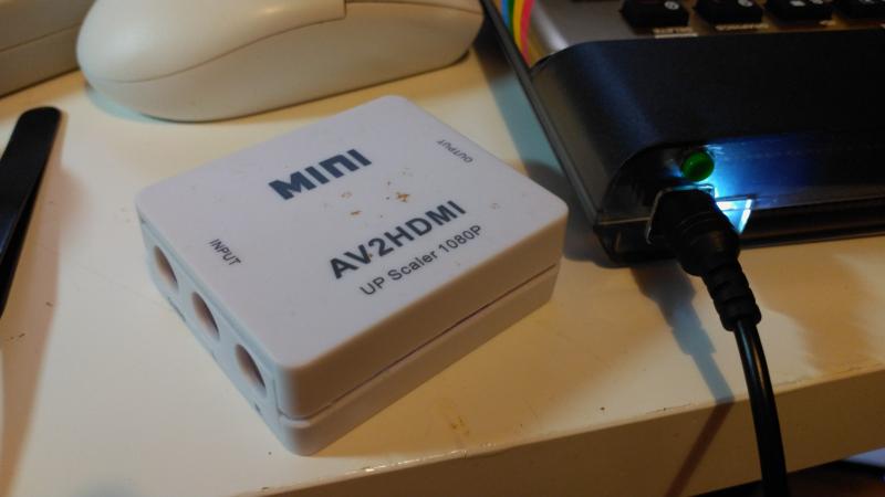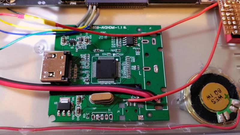 На hdmi-переходнике запаян переключатель разрешения 720-1080 на положение "720", питание 5В взято с ноги JP2.