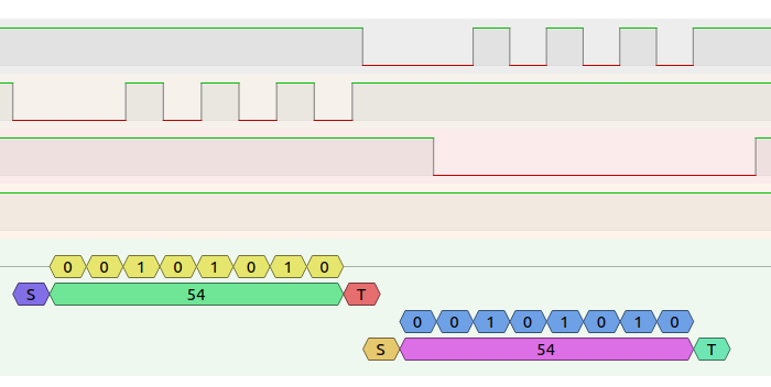Хотя, как правильно заметил Pavel Vymetálek, на скоростях выше 38400 основную роль играет время обработки принятого байта (записать в память, уменьшить счётчик, и т.п.). На 57600 такие паузы составляют, я бы сказал, половину времени.
