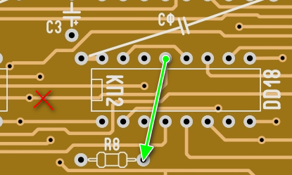 Также необходимо перерезать дорожку идущую к dd18.13 и подсоединить 13 ногу к +5 в через резистор R8