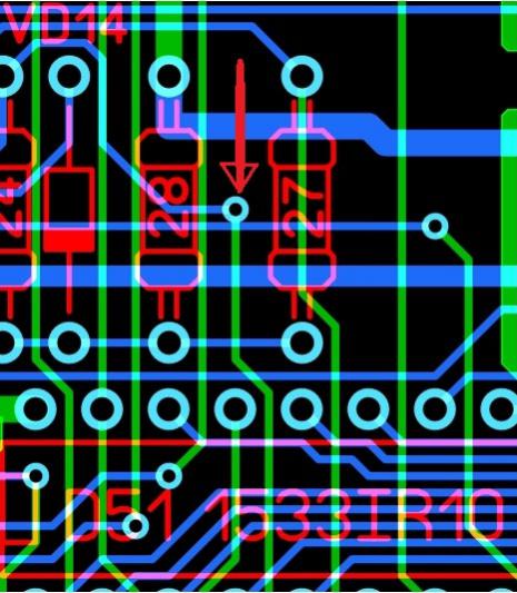 2. Вторая ошибка платы - 9 нога D39 (К1533КП11) с нижней стороны платы заведена на "общий" - необходимо аккуратненько отрезать.