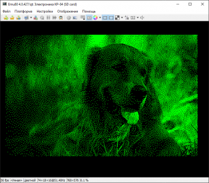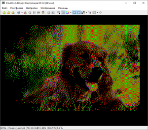 Дамп черно-белого варианта в основном совпадает с БК-0010 за исключением того, что в строке из 512 всего 480 центральных отображаемых точек, по 2 байта в начале и конце зануляются. Ну и строк 224, а не 256.