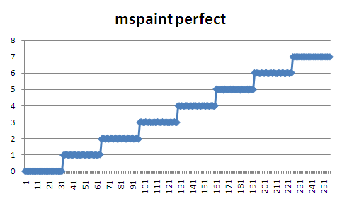 и "эталонная" яркость нарисованная в mspaint (c 0/7 1/7 2/7 итд количесттвом пикселей)