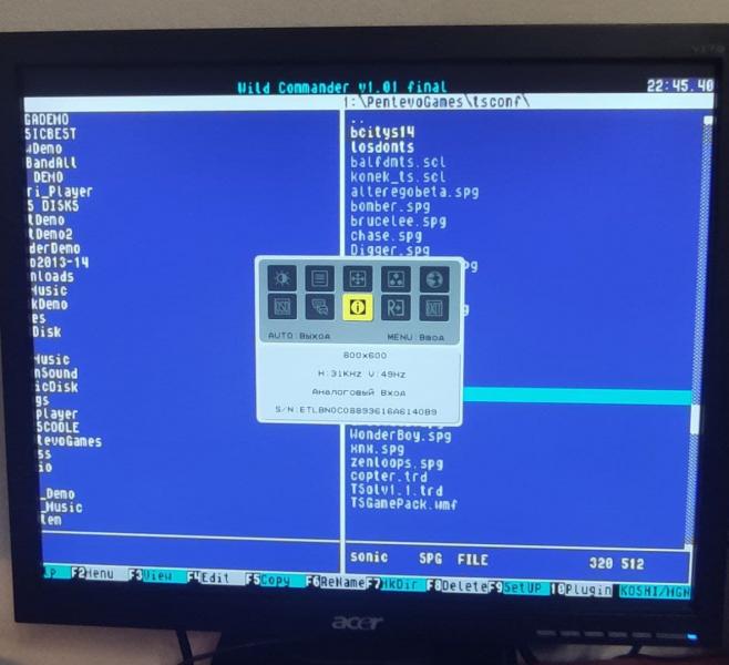 PentEvo C4, VDAC, Acer V173, TSConf build date: 28.04.2018 00:31:56