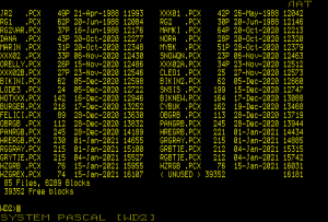 на представленном листинге он самый последний (74 блока который).Код:ЛAТ JR2 .PCX 49P 21-Apr-1988 11993 XXX01 .PCX 42P 26-May-1988 12042 RG1 .PCX 62P 20-Jun-1988 12084 RG2 .PCX 30P 20-Jun-1988 12146 RG2VAR.PCX 37P 16-Jun-1988 12176 MAMKI .PCX 64P 20-Oct-2020 12213 DANA .PCX 43P 20-Oct-2020 12277 NORA .PCX 28P 20-Oct-2020 12320 MARIN .PCX 31P 20-Oct-2020 12348 MYBK .PCX 51P 28-Oct-2020 12379 XXX02 .PCX 33P 06-Nov-2020 12430 SNOWQN.PCX 23P 06-Nov-2020 12463 ORELLY.PCX 26P 15-Nov-2020 12486 XXX02A.PCX 34P 23-Nov-2020 12512 XXX02B.PCX 27P 23-Nov-2020 12546 CLEO1 .PCX 25 27-Nov-2020 12573 BIKINI.PCX 62 05-Dec-2020 12598 BIKIN2.PCX 62 05-Dec-2020 12660 LODE3 .PCX 24 05-Dec-2020 12722 SNSIS .PCX 199 15-Dec-2020 12747 HOTXXX.PCX 142 16-Dec-2020 12946 BIKNEW.PCX 164 17-Dec-2020 13088 BURGER.PCX 216 17-Dec-2020 13252 CYBUK .PCX 162 19-Dec-2020 13468 FELICI.PCX 89 28-Dec-2020 13630 OBGRB .PCX 113 28-Dec-2020 13719 OBRGB .PCX 112 28-Dec-2020 13832 PANGRB.PCX 245 28-Dec-2020 13944 PANRGB.PCX 245 28-Dec-2020 14189 HREGRB.PCX 221 01-Jan-2021 14434 HRERGB.PCX 230 01-Jan-2021 14655 GRGRAY.PCX 215 01-Jan-2021 14885 RGGRAY.PCX 215 01-Jan-2021 15100 GRBTIE.PCX 212 04-Jan-2021 15315 GRYTIE.PCX 215 04-Jan-2021 15527 RGBTIE.PCX 212 04-Jan-2021 15742 HZGRB .PCX 76 15-Jan-2021 15955 HZRGB .PCX 76 15-Jan-2021 16031 HZGREX.PCX 74 15-Jan-2021 16107 < UNUSED > 39352 16181 85 Files, 6289 Blocks 39352 Free blocks WD2> SYSTEM PASCAL [WD2]