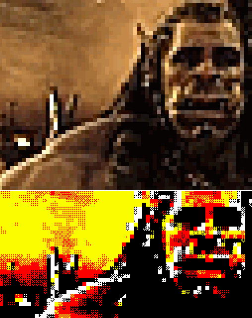 "Есть мысль вместо классических картинок перед загрузкой уровней сделать настоящие цветные видео-вставки из фильма ВАРКРАФТ. Конечно, на видео показано лишь раннее прототипирование, процесс конверсии будет совершенствоваться, но примерное представление можно получить. Видео играется на стандартном экране классического Спектрума на классической частоте процессора. 4 градации оттенков чанками 4х4 + атрибуты."