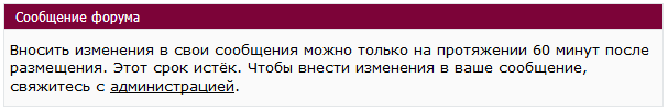 По какой-то причине теперь невозможно отредактировать собственные сообщения по истечении определённого времени (вроде 15 минут). Если в первом сообщении темы был "косяк", то теперь его никак без помощи модератора не поправить. Изменения в политике редактирования заметил только сегодня - очень нудобно стало писАть на форуме. Были ли причины для такого драконовского изменения политики редактирования?