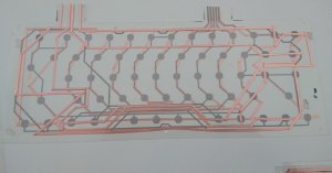 _д) нашим методом мы не можем делать расширения на контактных площадках клавиш, поэтому прокладывайте дорожки так, чтобы они проходили строго через центр окошка клавиши в разделительной плёнке. В идеале точно в месте касания клавишей.
