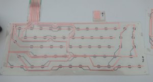 На доставшейся мне клавиатуре штатные дорожки во многих местах окислились и перестали проводить ток. Клавиатура превратилась в кирпич. Как показал гугл, достать новую мембрану почти нереально, есть в сети несколько вялых попыток заказать новодел, но пока безуспешных. Ремонт простым карандашом, токопроводящими маркерами/красками/клеями тоже не дает долговременного эффекта, судя по гуглу. Поэтому я попробовал другой метод - самоклеящаяся медная фольга в лентах с алиэкспресса. Выглядит так: