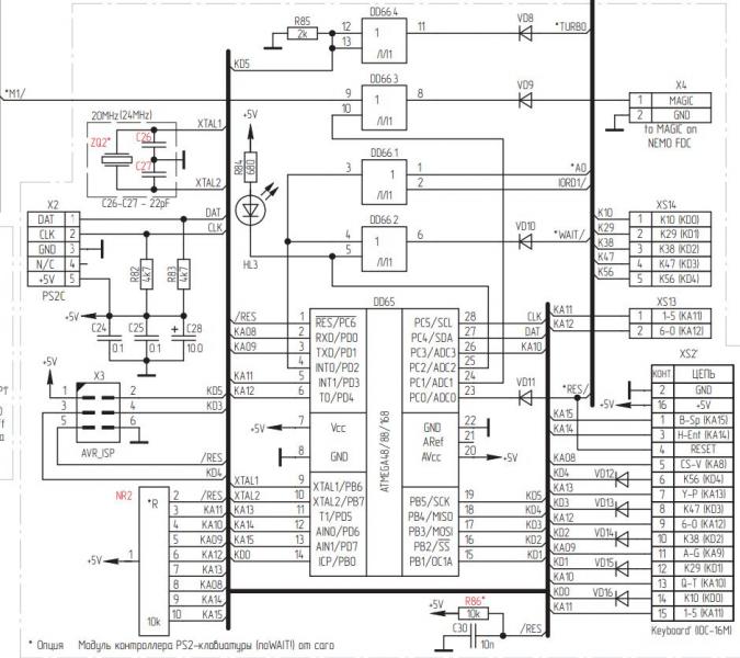 Помогите разобраться с сигналами, подключения по схеме кая, контроллер клавиатуры на Мега48 от кая для пентагона.