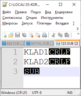 Также при подготовке файла .SUB к выполнению последовательности символов "$$" преобразуется в