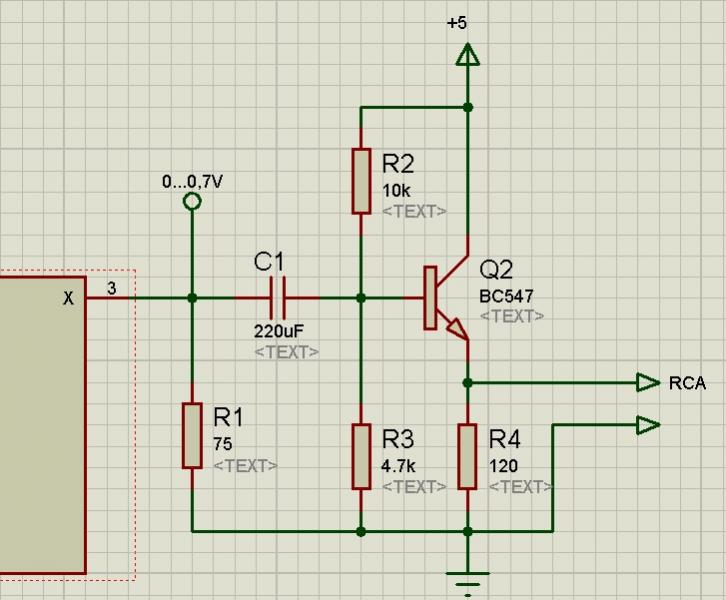 Я не совсем четко выразился, R1 не выплняет смещение, его выполняют R2 R3, поскольку транзистор выходит в линейный режим при напряжении на базе хотя бы 0.5В (если я не прав, поправте), а на выходе микросхемы от 0 до 0,7В. В версии R1=1k, без конденсатора и R2 R3 я изначально задавал на выходе диапазон напряжений 0.6 - 1.3 вольта. По стандарту входы Pr и Pb должны иметь размах 0,7 вольта.