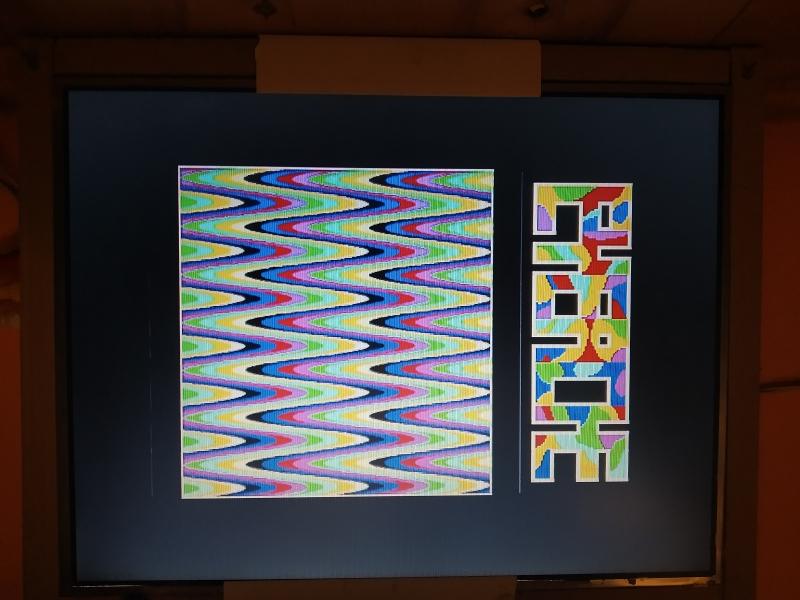 Я как-то легкомысленно отнесся к идее сделать Пентагон с видеополем в 312 строк. Идея была такая: Генератор синхроимпульсов работает на стандартной частоте 14 МГц, а процессор тактируется отдельно на частоте 14,336 МГц, что будет равнозначно 71680 тактов на кадр, как в Пентагоне. Но уже в процессе разработки схемы мне становилось ясно, что пострадают эффекты на бордере. Смещение в 8 строк решено было сгладить подбором положения INTа, то есть совместить положение луча по центру экрана, а к верху и низу будет расхождение по 4 строки. Но вот старая дэмка разбила мои мечты и в ней нет бордерных эффектов.