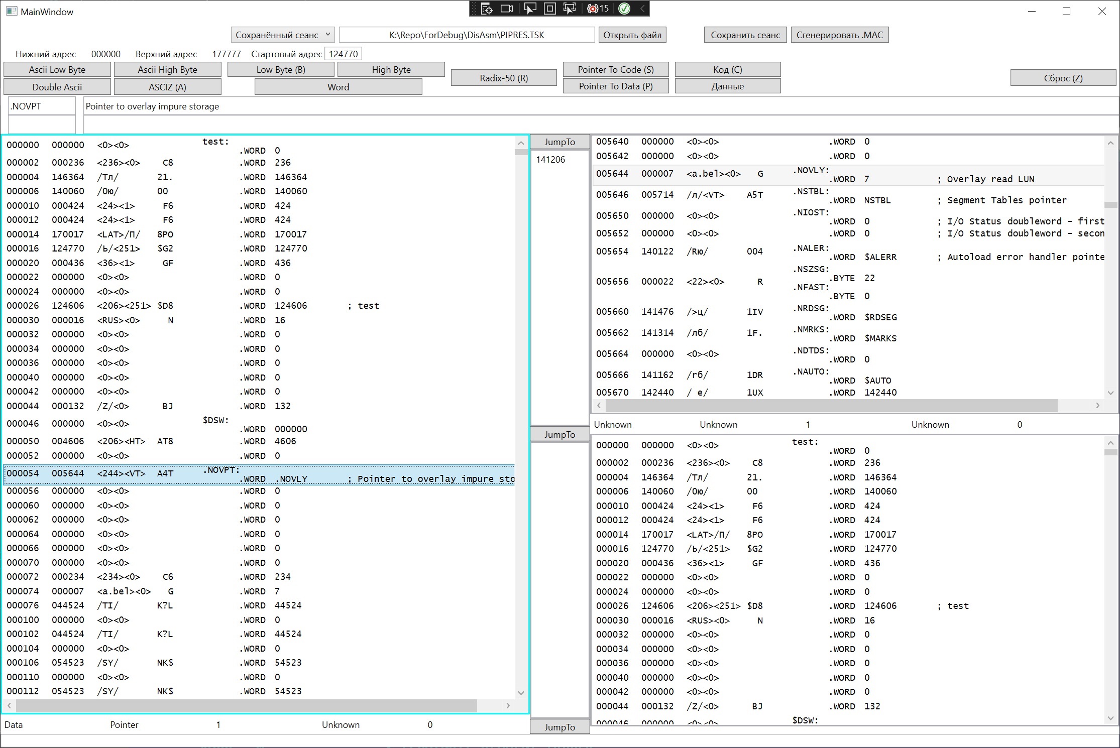 Найдена (и поправлена) ошибка (на скриншоте DisAsm-а видна неправильно сформировавшаяся строка) и поправлен функционал "разрезания" строк. Поскольку была приличная переделка работы с памятью "загруженной" программы - большой этап тестирования, прежде чем двинусь с концепта дальше.