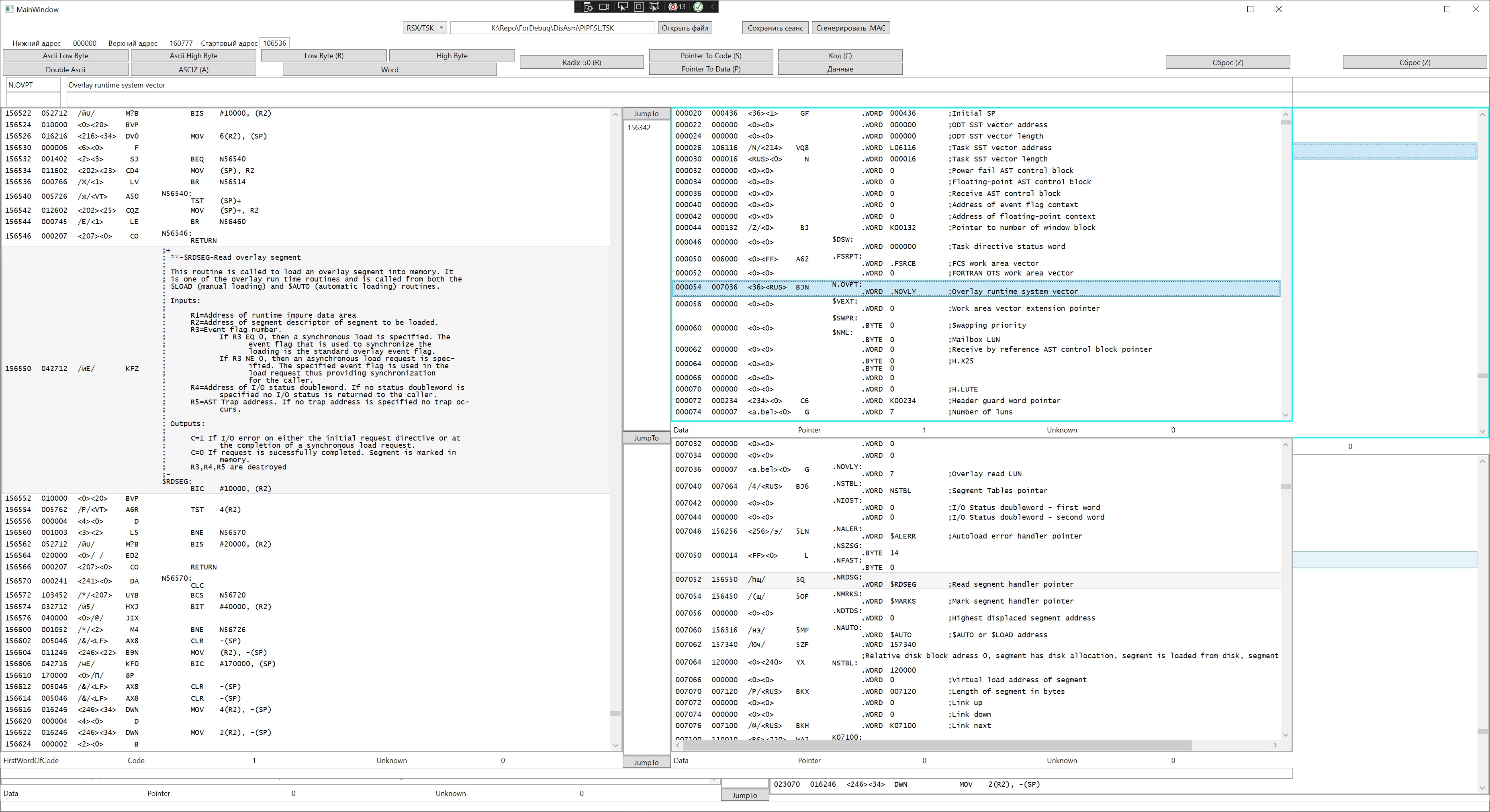 Ну, если говорить строго, до перекрытий в данном случая я ещё не добрался (но программа с перекрытиями), только начал раскручивать информацию о них (правое верхнее окно, там же пример автогенерации комментариев), но началась отработка показа листингов для таких программ. Пока на так называемой multi-user task.