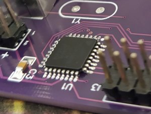 Сейчас специально взял и спаял такой же PLCC контроллер. Мне стыдно, но новую серию фиолетовых плат PLCC я на собираемость не проверял. Впрочем, изменение там были только одно - резистор R1. Плата с первого раза не заработала, глючила, были ложные срабатывания. Тщательно отмыл китайский флюс, который остался под PLCC панелькой. Снова глюк. На этот раз не той стороной матрицу воткнул в панель. Нагрелась, но не сгорела. Поставил правильно - работает.