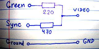 для теста можно вообще схемку из 2 резисторов сделать и к композитному входу телека подключить: