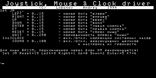 Контроллер манипулятора КМ предназначен для сопряжения ПЭВМ БК с устройствами ввода координат (типа 'мышь', 'джойстик'), а также печатающим устройством.