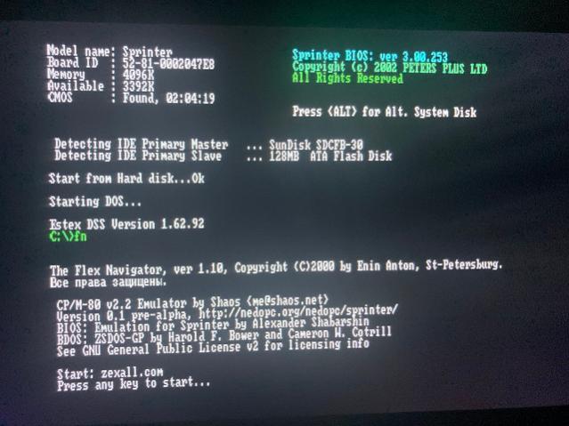 Тут некоторые почему-то утверждают, что в Спринтере стоит урезанный Z80, который даже не способен пройти тест ZEXALL (кое-кто даже говорит, что это eZ80).