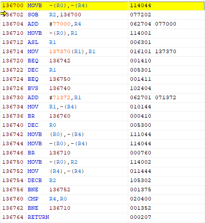 Он пересылает часть кода в назначенную рабочую область, потом делает JMP на начало этого кода, и первым делом затирает свое начало, пересылая туда 572 байта из конца архива: