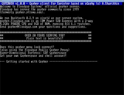 Под конец многочасового стрима (можно проиграть по той же самой ссылке выше) портированный гофер-браузер таки заработал с произвольными серверами Gopher в эмуляторе Спринтера