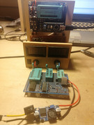 Многие пользуются программатором arduino_eprom27_programmer https://github.com/walhi/arduino_eprom27_programmer который собственно и собран на Ардуино и платы продавались на барахолке. В оригинальном виде он у меня не смог прошить ни 27256 ни 27512, как оказалось - проблема в программе для РС. Пришлось написать свою программу плюс еще добавил еще один повышающий DC-DC преобразователь на 6.2В для питания 27256 и 27512 при программировании...