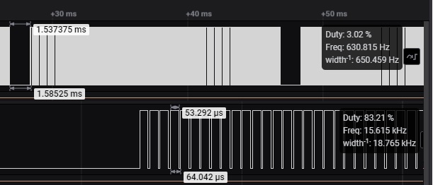 Осциллографа сейчас нет, лог анализатор показывает такую картинку на выходе видео: