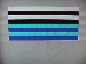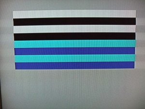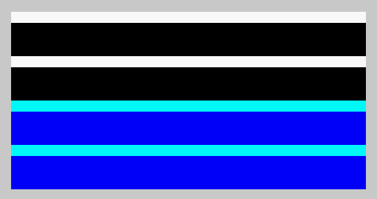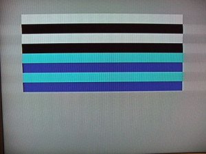 Верхняя треть экрана отображает тест бита 3 (черный с белым), средняя треть экрана отображает тест бита 5 (синий с голубым).