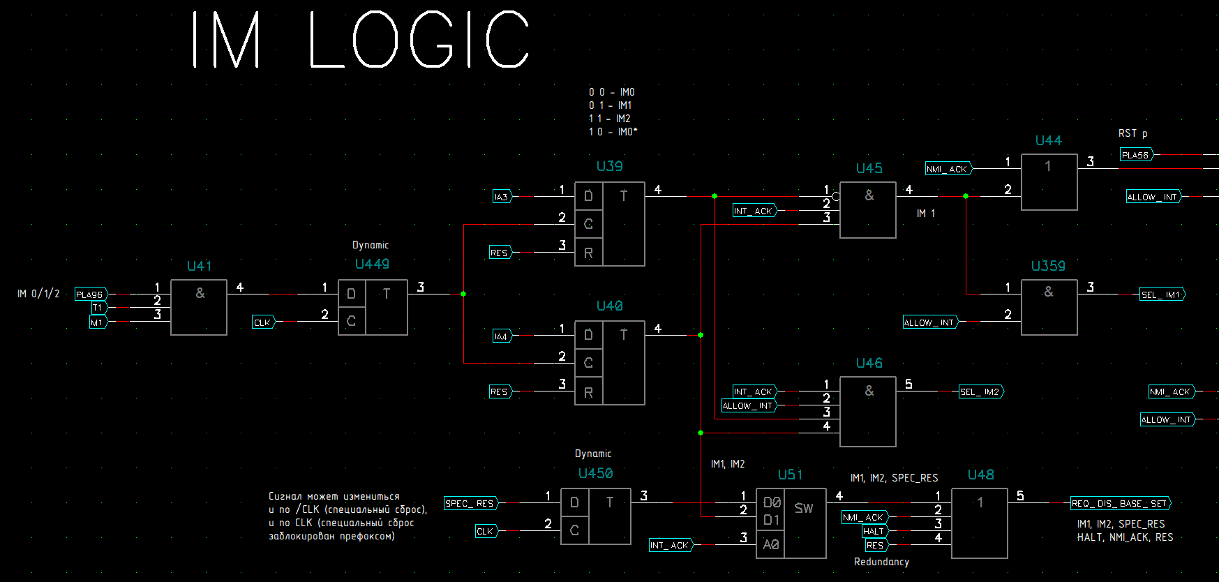 Не вижу SEL_IM0. И не понятно, зачем NMI_ACK с IM1 объединяется по ИЛИ на U44 - для чего это?