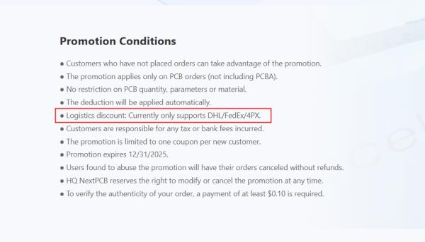 По факту все иначе. Платы не 100x100, а значительно меньше и 5шт, а не 10, ничуть не free. И не понимаю, по каким условиям в акцию не попал.