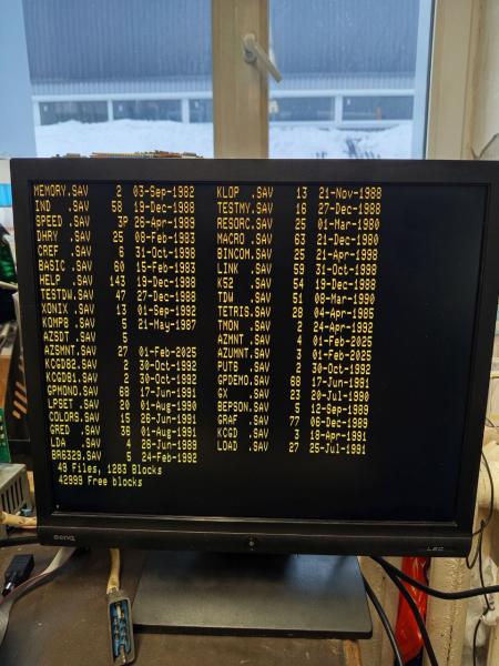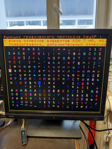 Прошиваем монитор, включаем. Видим картинку, но с волнами. Автоподстройка не помогает, потому что для её корректной работы нужна картинка во весь экран. Загружаем драйвер графического режима KCGD81.SAV, потом графическую демку GPDEMO.SAV. Во время работы демки нажимаем кнопку автоподстройки на мониторе и получаем замечательную картинку.