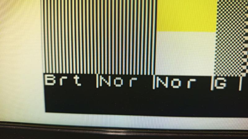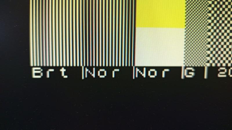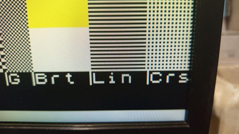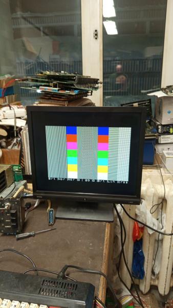Почитав интернет, я пришёл к выводу, что мне нужен такой монитор, поскольку есть куча разного старого промышленного и бытового железа, но нет мониторов к нему. Что-то получается подружить при помощи GBS-8200, что-то при помощи zx-vga. Но хотелось чего-то более универсального, да и картинка через преобразователи зачастую оставляет желать лучшего. А кое-где они совершенно не справляются. Итак, монитор был приобретен. Где-то год-полтора назад)) К моему удивлению, он переварил без всяких переходников достаточно много из имеющегося железа. Да, с мылом и искажениями, но показывал. И вот дошли руки копнуть глубже. Цель на ближайшее время - подключить к нему КЦГД, а также древнюю стойку ЧПУ Agiematic C. Связался с товарищем Leon для консультаций)) Было решено устроить обучающий урок на чем-то попроще, потому что у КЦГД синхра замешана в зеленый, а Agiematic располагается в другом месте и туда нужно ехать уже подготовленным. Выбор пал на советский клон ZX-spectrum. Был спаян переходник 1:1, монитор сразу выдал весьма приятную картинку, но с волнообразными искажениями: