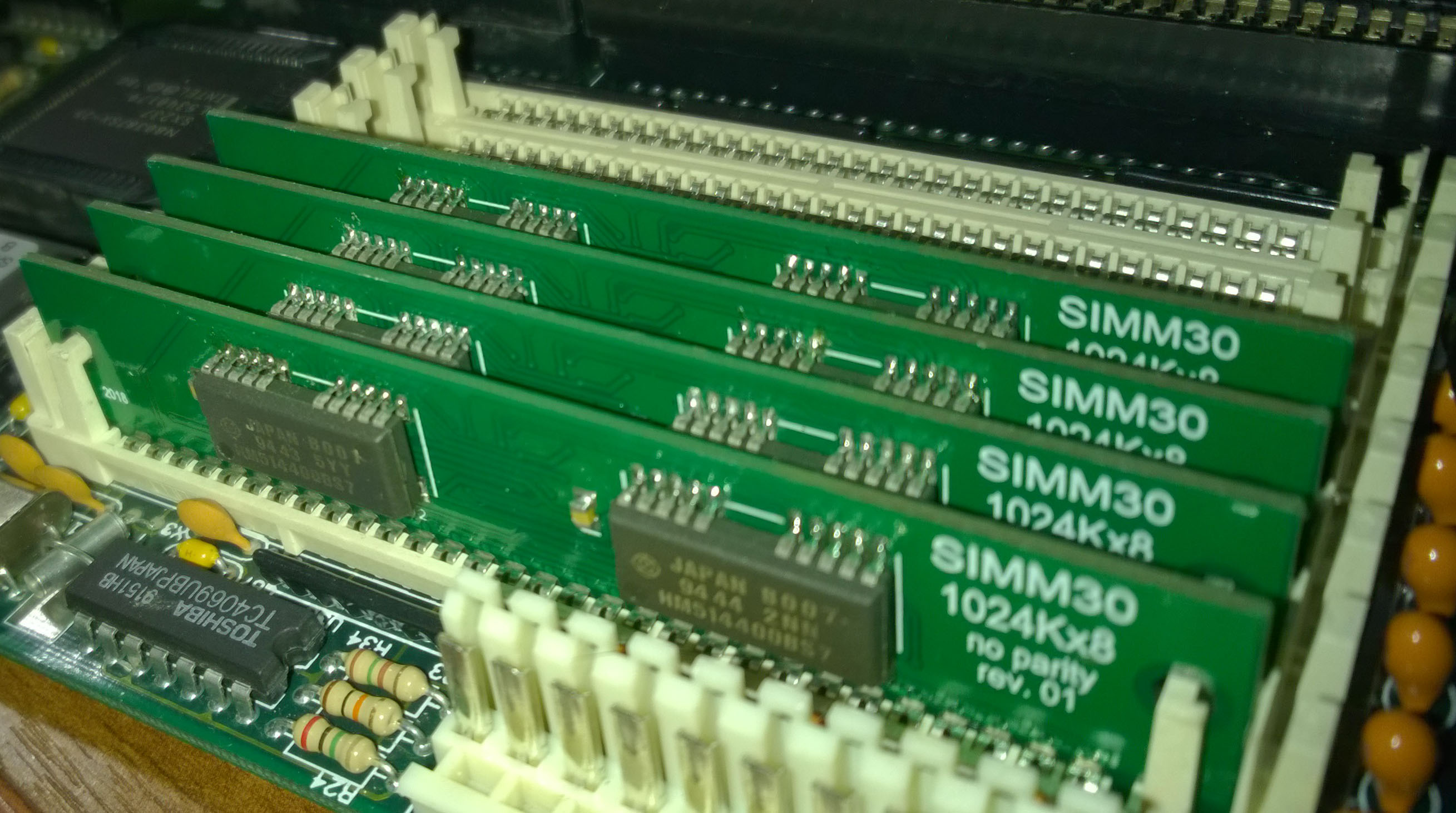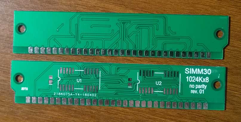 А теперь собственно вопрос, т.к. я его развел для чипов 1Мbх4bit, которые легко сдуваются с SIMM72, которые еще можно доставать по божеским ценам на постсоветском пространстве, то естественно не стал добавлять чип контроля четности, т.к. отдельно 1Mx1bit покупать выйдет дороже, чем сдуть два чипа 4 битных.
