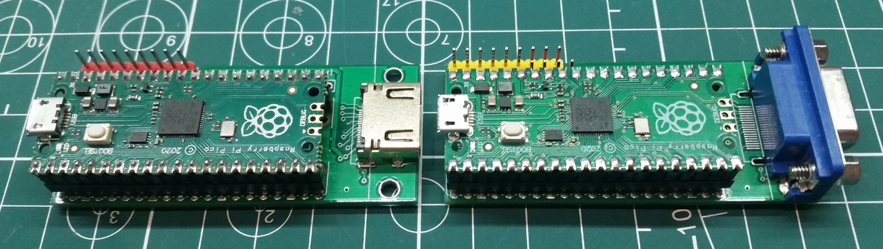 Как и в ZXKit1, адаптер RGB-VGA/HDMI от АлексЕкб подключается к Спектруму используя цифровые сигналы (RGBI). У Raspberry Pi Pico есть возможность формировать изображение в виде сигнала DVI, что расширяет возможности по подключению к современным мониторам. Плата RGB-VGA/HDMI от AlexEkb разработана таким образом, что можно установить или VGA или HDMI разъем в зависимости от нужного видеовыхода.