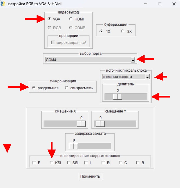 Если на картинке есть помехи, артефакты, то можно покрутить настройку "Задержка захвата" для получения стабильного изображения.