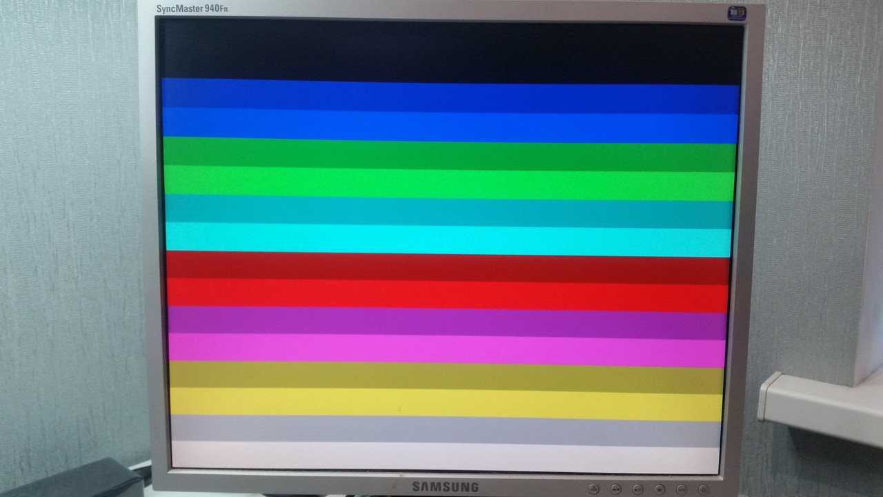 После копирования Raspberry Pi Pico автоматически перегрузится. Если все собрано правильно, на экране монитора должна появиться тестовая картинка. В зависимости от версии прошивки это могут быть цветные полосы или настроечная ТВ-таблица.