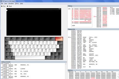 Взял UKNCBTL, переименовал в BKBTL, почикал пока флоп и звук, убрал второй процессор и второй контроллер памяти, в первом изменил реализацию обращений к памяти, объединил контроллер памяти с матерью, поставил стабы для будущей реализации нужных портов, сделал отрисовку чёрно-белого режима экрана 512 x 256.