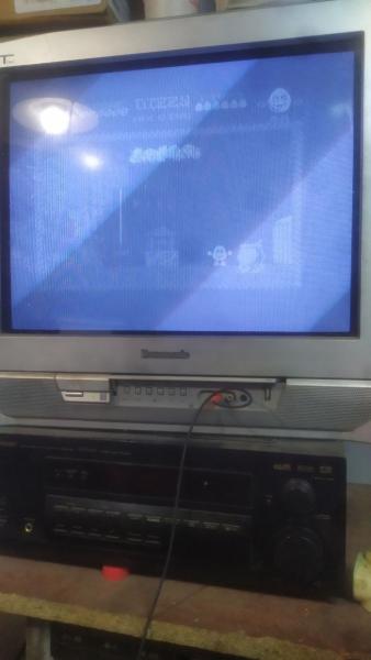 Запустив уже с другим процессором я понял что у меня бедуля с видео выходом. Нарыв схему, было ясно, что НЧ выход этого ПК собран на " своего рода сумматоре " RGB выходов через обвязку. Увы сего на своей плате я толком не обнаружил. вместо подстроечных ( если я верно понимаю ) впаяны обычные резисторы, согласно схеме в послед выходу идет емкость 10мкф 10В, тут стит 50 , кт315 на плате присущь, но как то странно включен. Картинка есть, она ЧБ , понятно, нужен декодер, но качество картинки печаль. Контрасность низкая и большой пересвет,тобеж очень серая ( на фотке видно ) На жк телике картинка с очень большим искажением и то и дело пишет - нет видео сигнала.