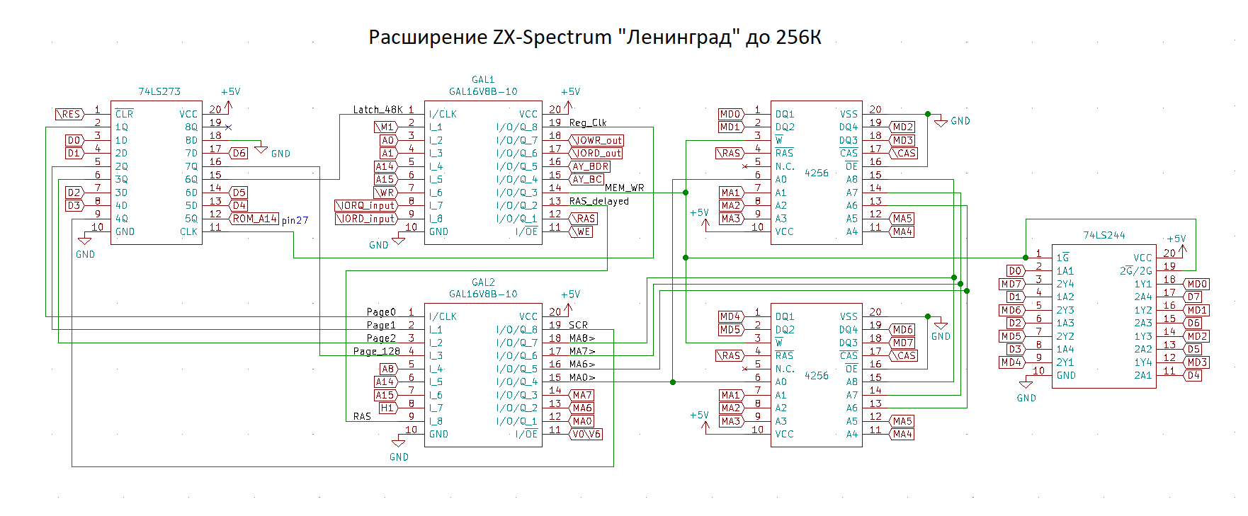 Сделал пока в облегченном варианте - чипы 4256, но используются только 64Кб. Старший адресный разряд просто на "земле".