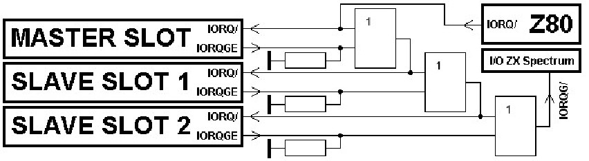 Интересно, сколько там длительность сигнала IORQ и сколько слотов может быть у компа, чтобы хватило длины сигнала? Пока там прощёлкает по всем слотам и сформируется итоговый сигнал IORQGE?