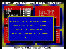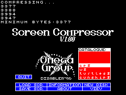 Простой упаковщик спектрум картинок по методу RLE, используется 5-ть методов упаковки данных. На выходе получается упакованная картинка со встроенным релоцируемым декомпрессором. Интересно было бы сравнить с другими аналогичными