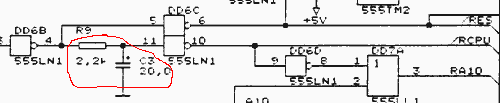 почему-то на z80 постоянно активный сигнал сброса. Я думаю так не должно быть... начал разбираться - вместо резистора стоял диод, а кондёр на 1мк. заменил как по схеме, вроде помогло. экран стабильный, вертикальные полосы (без ПЗУ), с ПЗУ - стабильный мусор.
