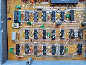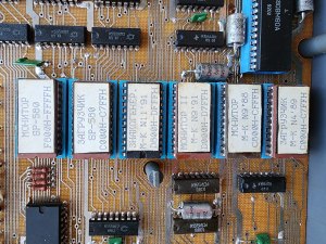 И вторым сюрпризом для меня стал набор ПЗУ. У меня раньше на переднюю панель был выведен переключатель в виде кнопки, который менял конфигурацию компьютера со стандартной на конфигурацию SP-580. Я потом все свои обвесы убрал по какой-то причине. Но микросхемы с прошивкой SP-580 сейчас стоят на местах, где должны стоять стандартные Загрузчик и Монитор. Видимо, я жёстко зафиксировал конфигурацию SP-580, судя по тому, что неподключенный к монитору комп на клавиатуру реагирует и звук выдаёт. Теперь придётся разбираться, как всё вернуть обратно, чтобы заработала стандартная конфигурация. А ещё, если я не ошибаюсь, у меня живы все 6 родных микросхем ПЗУ с оригинальной прошивкой от ЛИКа.