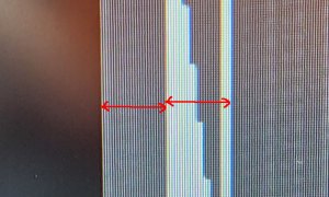 С пропорциями разобрались. Теперь нужно понять по поводу положения изображения Специалиста относительно растра. В регулировках телека нашёл режим, который мне сделал видимым раст, а заодно и помехи от компьютера. Но в этом режиме я уже смог посчитать пиксели.