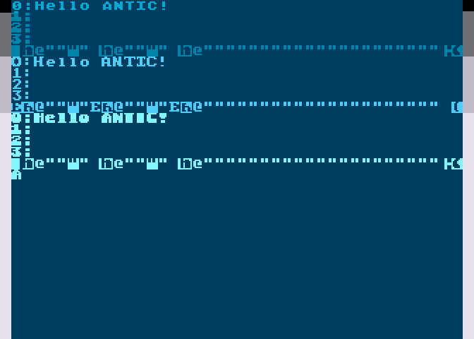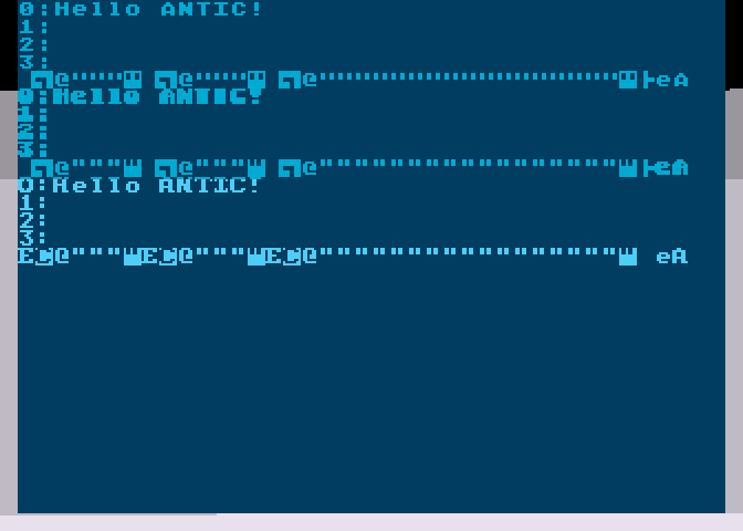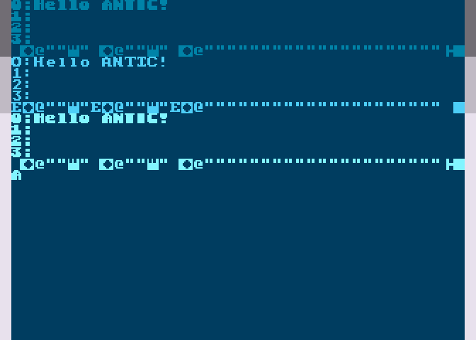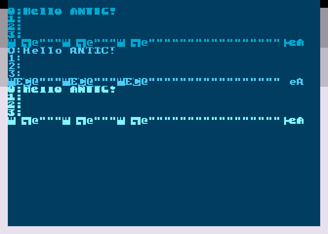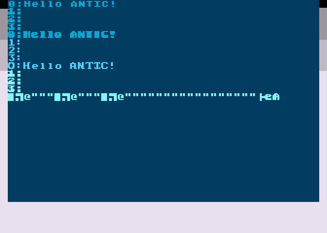Вот три области, три раза дёргается DLI, и три раза меняются данные для антика (начало экрана).