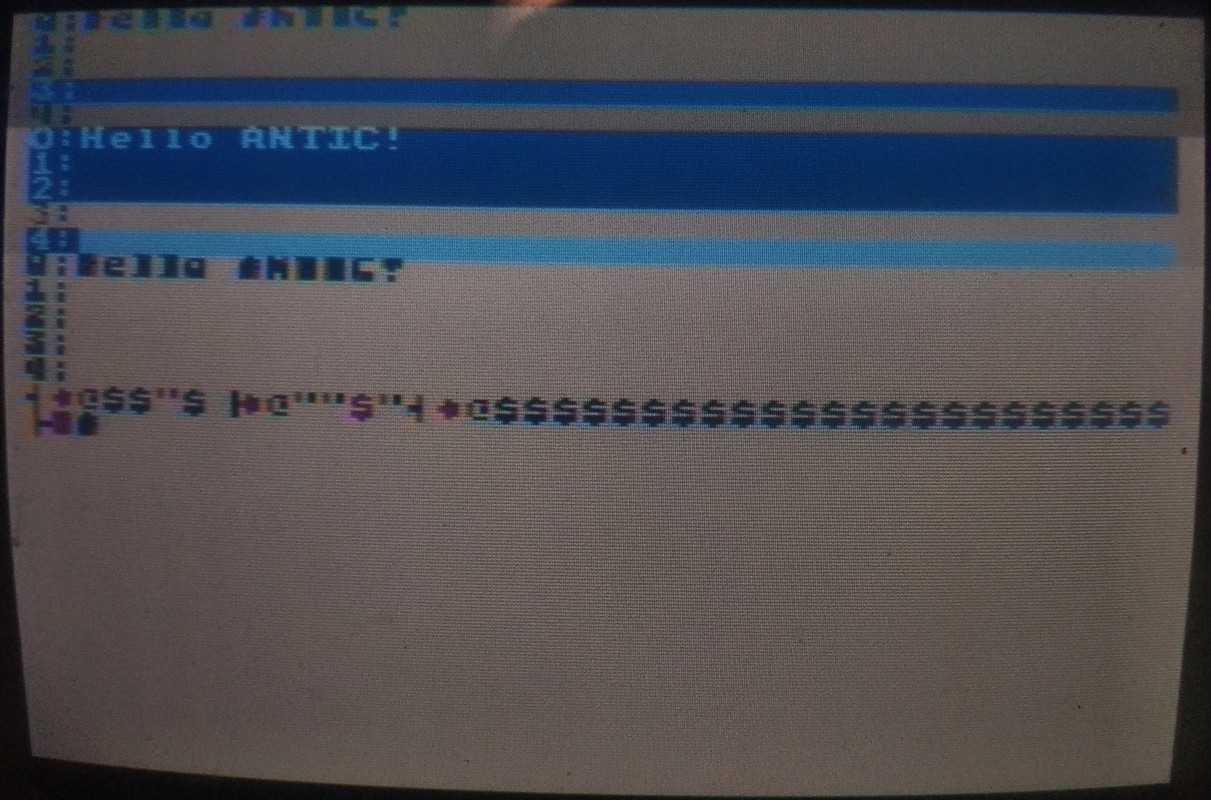 Если сделать хитрый финт ушами и первый DLI засунуть в конец списка антика, то да, он сработает, но не повторится с начала (как ожидалось) а возьмёт данные шрифта и цветов по умолчанию (?)