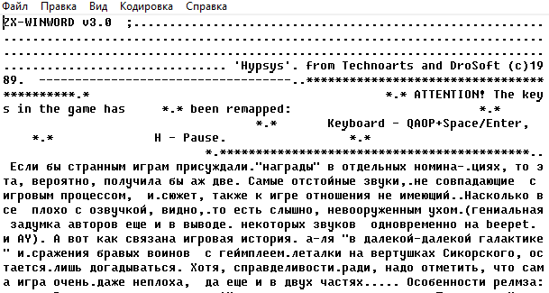 минус в том, что формат WinWord, не совсем текстовый - в начале текста идет отметка ZX-WINWORD v3.0 (или 2.1 или 2.2, может и еще какие есть) плюс по тексту есть управляющие коды